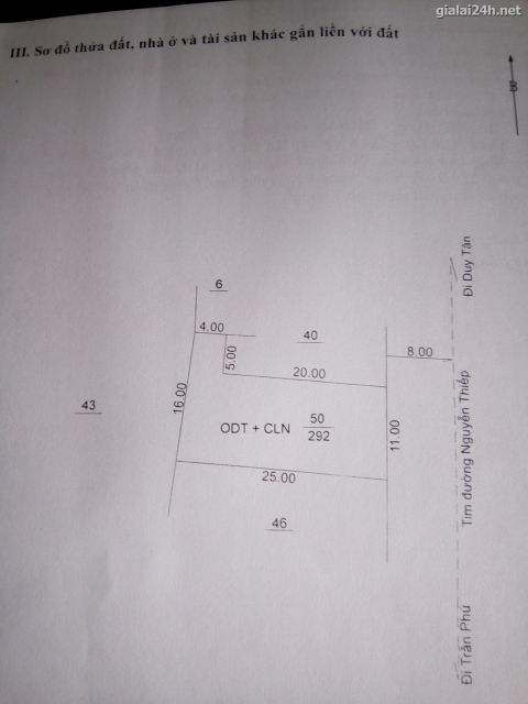 Tại 159 Nguyễn Thiếp, Pleiku, GiaLai (Ngã 3 Nguyễn Thiếp - Duy Tân) Đất hướng mặt trời mọc Mặt đường chính rộng 16m. Cách bệnh viện Thành phố Pleiku 700m. Cách công an tỉnh 700m. Cách trường tiểu học Trần Quốc Toản 500m. Cách trường cấp 2 Trưng Vương 600m. Cách khu hội chợ Nguyễn Văn Cừ 1km. Cách chùa Thiền Viện Trúc Lâm lớn nhất Đông Nam Á 1800m. Giá 200trịu 1m ngang. LH: Zalo/Facebook/ SĐT: 0988.3131.41 / 091.1919.123